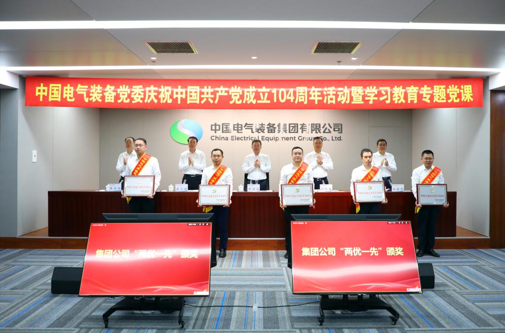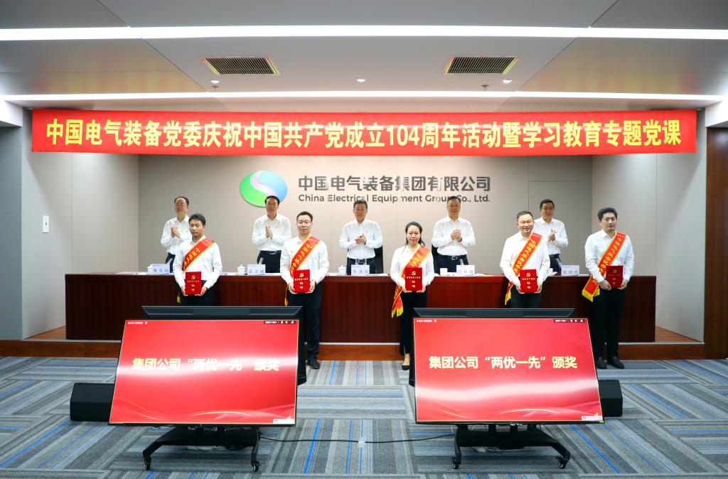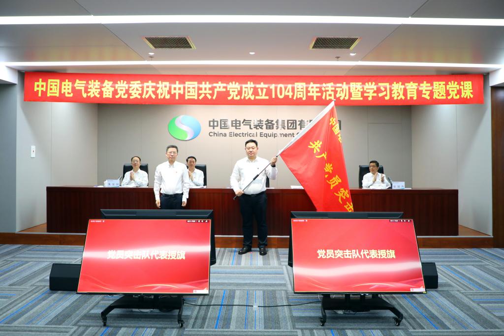 6月30日,中國電氣裝備黨委舉辦慶祝中國共產黨成立104周年活動暨深入貫徹中央八項規定精神學習教育專題黨課,深入學習領會習近平新時代中國特色社會主義思想,貫徹落實黨的二十大和二十屆二中、三中全會精神,繼承和弘揚偉大建黨精神,扎實推進深入貫徹中央八項規定精神學習教育,發揮先進典型示范引領作用,通過“先鋒——創先爭優、聚力——同心同行、攻堅——使命擔當、領航——凝心鑄魂”四個篇章,匯聚先鋒力量、凝聚發展共識、錘煉黨性修養,鼓舞、激勵廣大黨員干部職工和團員青年,牢記職責使命,強化責任擔當,為加快建設世界一流智慧電氣裝備集團貢獻新的更大力量。集團公司黨委書記、董事長李洪鳳講授學習教育專題黨課暨青年精神素養提升第一課,黨委副書記、總經理閆華鋒宣讀“兩優一先”表彰文件,黨委副書記孟漢峰主持會議,集團公司黨委領導班子成員參加會議。