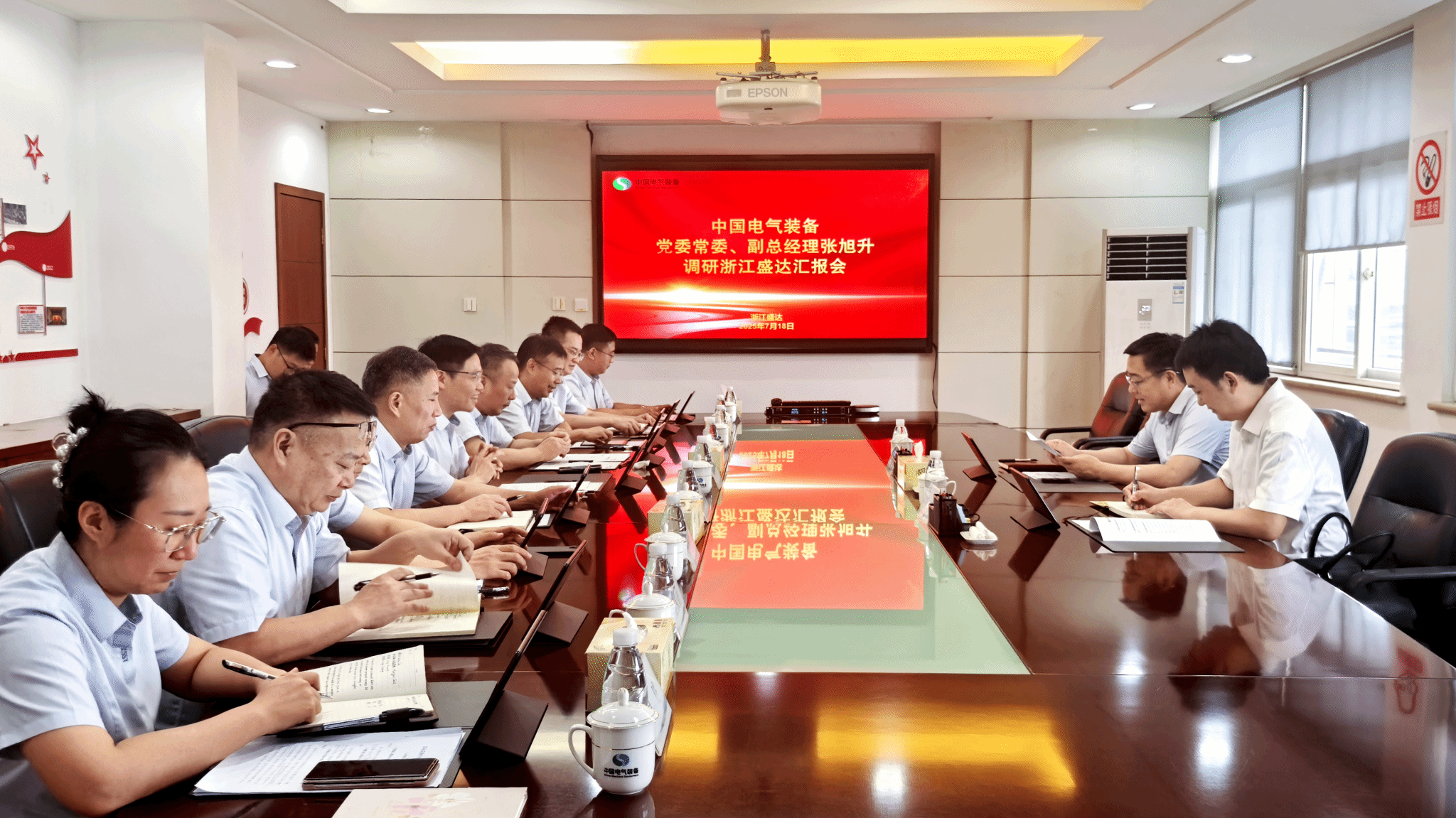 7月18日,中國電氣裝備黨委常委、副總經理張旭升到黨建聯系點浙江盛達開展調研,深入浙江盛達新廠遷建新址、智能示范車間,召開調研座談會,聽取工作匯報,與企業領導班子座談交流。