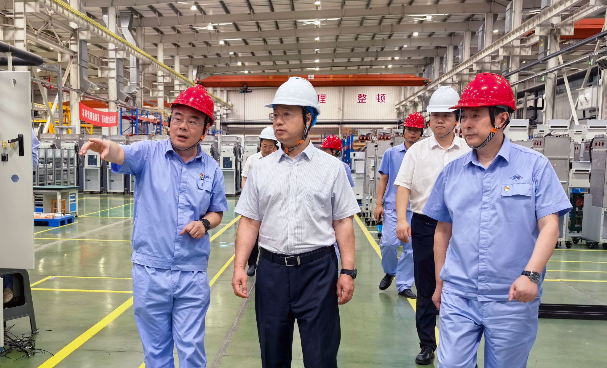 為深入貫徹落實中國電氣裝備2025年年中工作會議、質量安全大會精神,8月5日,集團公司黨委副書記、總經理閆華鋒到上海平高、西電上開調研,深入企業生產一線實地考察,詳細了解企業經營發展情況。集團公司黨委常委、副總經理朱安珂陪同調研。
