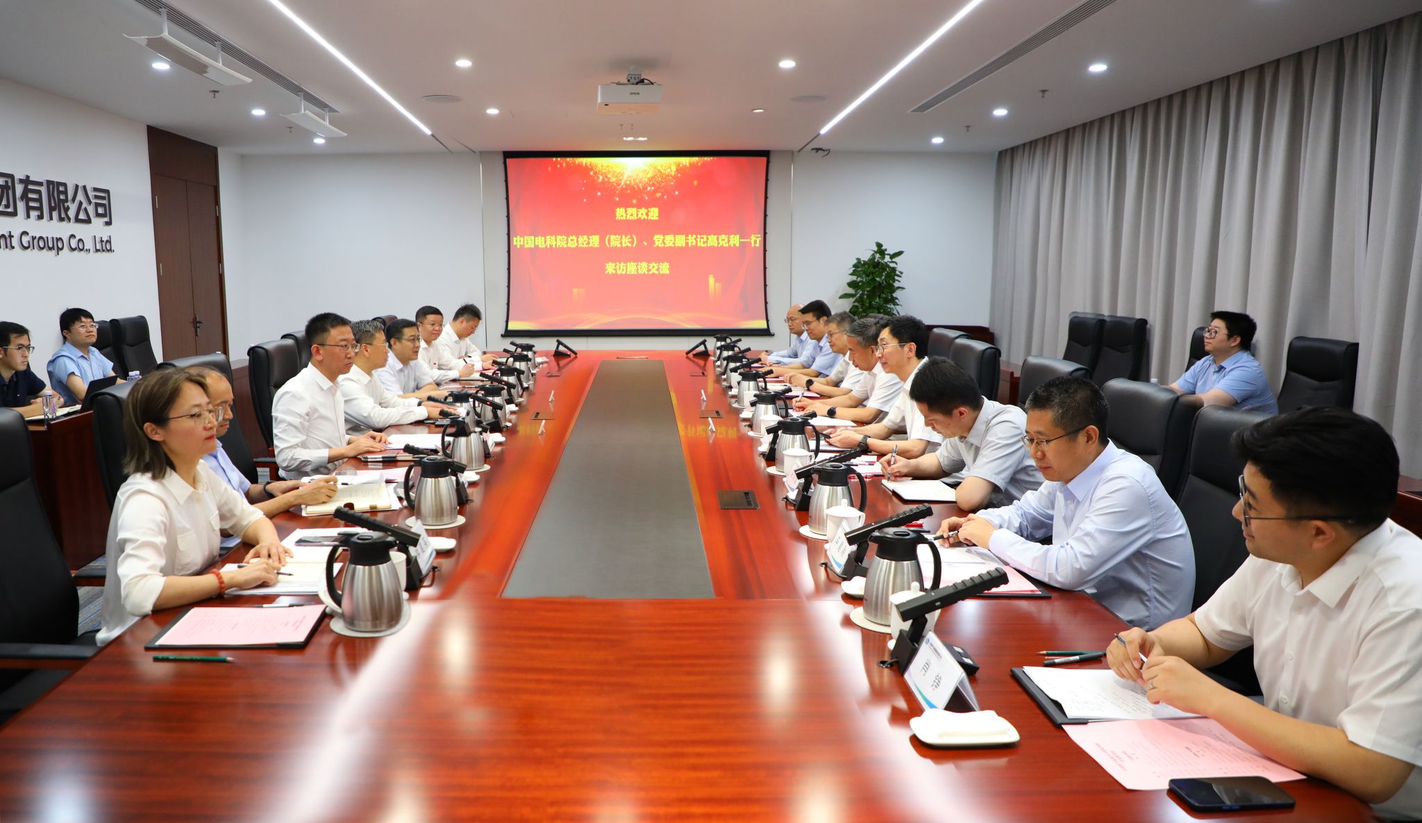 中國電科院科技創新部、產研協作部、戰略中心、高電壓研究所、儲能研究所、人工智能所有關負責人;集團公司戰略發展部、科技創新部、市場部,科學技術研究院、儲能公司等主要負責人參加會談。