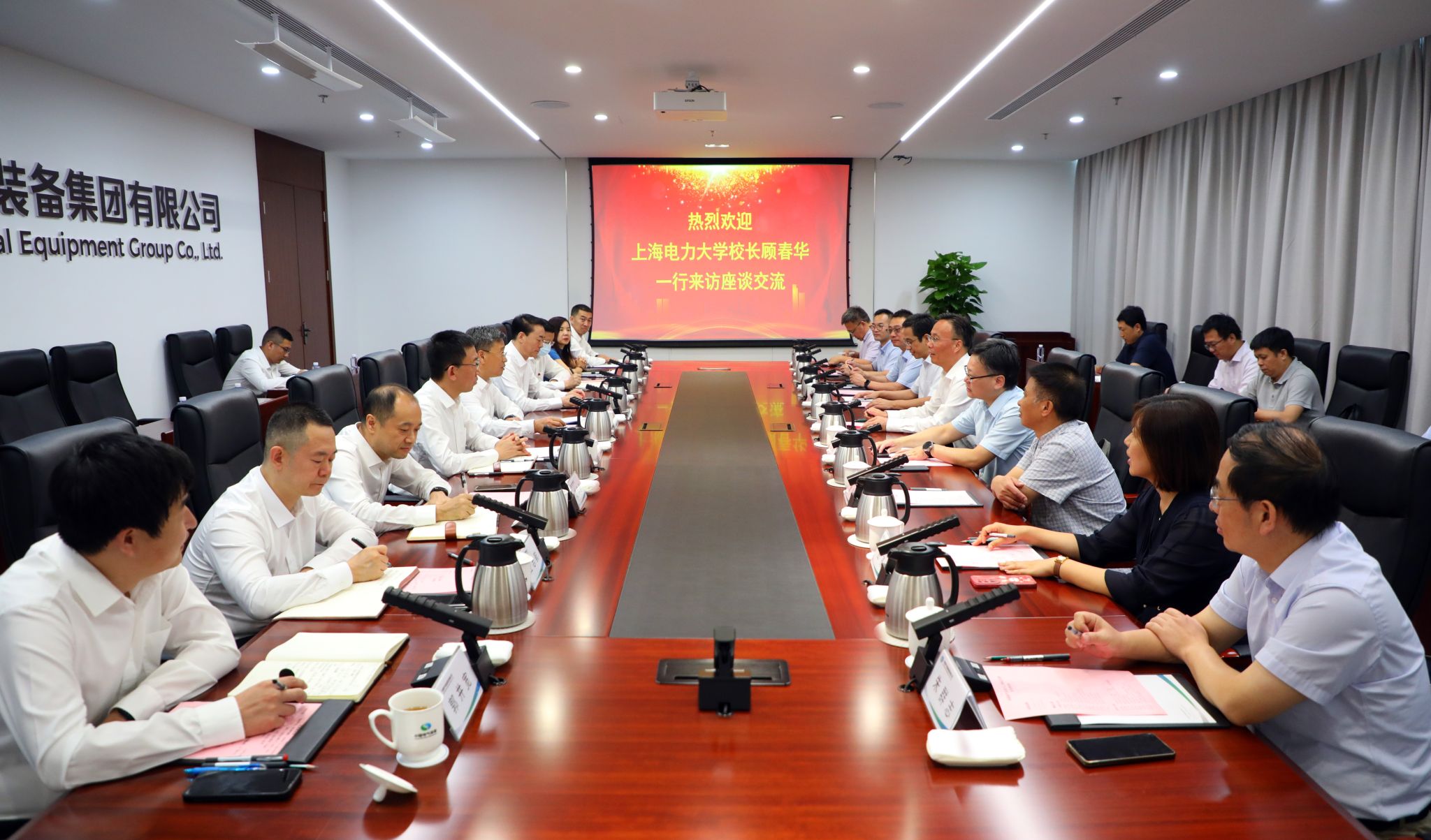 10月11日,中國電氣裝備黨委副書記、總經理閆華鋒在集團公司總部與上海電力大學黨委副書記、校長顧春華舉行會談,雙方就進一步加強合作進行座談交流。上海電力大學副校長張波、集團公司黨委副書記孟漢峰參加會談。