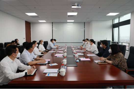 6月1日,上海市復工復產首日,集團公司黨委副書記、總經理周群在總部會見上海市靜安區區委書記于勇一行。