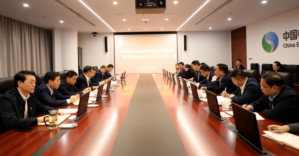 11月29日,中國電氣裝備召開黨委理論學習中心組學習(擴大)會議,集中學習習近平總書記關于完整準確全面貫徹新發展理念、推動裝備制造業高質量發展的重要論述,持續深化學習宣傳貫徹黨的二十大精神,傳達學習習近平總書記最新重要講話精神和重要指示批示精神,切實用習近平新時代中國特色社會主義思想武裝頭腦、指導實踐、推動工作,切實承擔起國家電氣裝備領域“國家隊”的使命責任,加快建設世界一流企業。集團公司黨委書記、董事長白忠泉主持會議并作總結講話,其他領導班子成員參加學習研討。