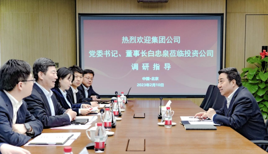 2月10日,集團公司黨委書記、董事長白忠泉到投資公司調研,深入了解投資公司發展情況,聽取重點工作匯報和基金業務發展思路匯報,對投資公司未來發展指明方向。