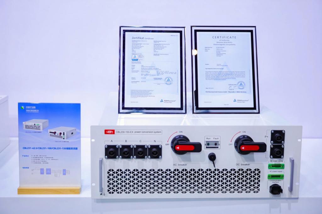 儲能變流器是儲能系統的核心設備,主要承擔直流與交流之間的能量轉換任務,同時對電網的穩定性和安全性起著重要支撐作用。本次認證的CBL230-100-EX型儲能變流器具有高效、高可靠性、支持多機并聯和并離網運行等功能,可廣泛用于工商業儲能、光儲充分布式儲能,以及交直流微網領域。