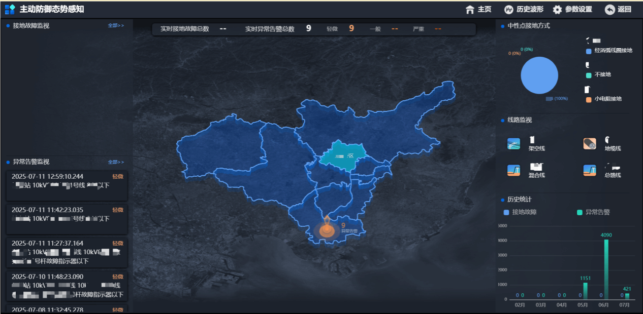 系統特點:通過獲取電網實時電氣量測信息、錄波信息,經零序多級啟動以及等效Π模型策略感知電網線路對地電容變化,做到故障事前動態感知,及時通知運維人員主動巡檢,進一步提升配電網運行的安全性、可靠性與穩定性,為配電網的高效運維和智慧化管理提供堅實支撐。1.云邊協同架構 閉環管理防御:“配電網故障感知能力提升系統”依托現有配電自動化主站系統架構,通過云技術與Docker容器化部署方式實現便捷部署與數據貫通。2.智能算法研判 精準隱患識別:采用云邊協同、多源數據融合、大數據分析等關鍵技術,構建“監測-預警-干預”的故障主動防御閉環管理體系,實現故障早期的隱患潛伏點精準識別與主動處置。3.實時動態感知 主動預警處置:基于故障隱患識別與動態綜合選線研判模型,可根據網架結構及運行數據自適應調整算法參數,從而實現故障主動防御的高準確性與強魯棒性。
