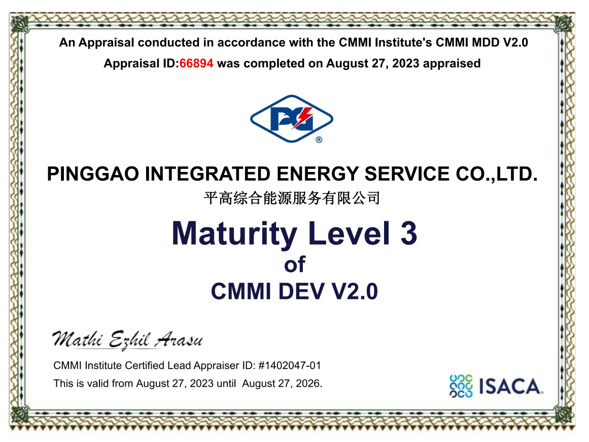 9月4日,從軟件能力成熟度模型集成(簡稱“CMMI”)認證機構獲悉,平高集團所屬企業綜合能源服務有限公司(以下簡稱“綜合能源”)順利通過CMMIDEV2.0的成熟度等級3(軟件能力成熟度模型2.0版本集成3級)認證,標志著綜合能源軟件能力成熟度、項目管理水平和過程管理能力等方面已經與國際接軌,并獲得國際評估機構的認可。