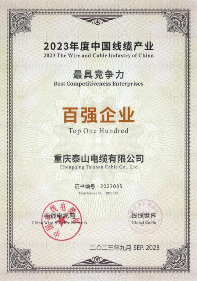 近日,以“強鏈謀局 聚智發展”為主題的2023中國電線電纜行業大會發布了“2023年度中國線纜產業最具競爭力企業”,山東電工電氣所屬重慶泰山(位列35)上榜“2023年度中國線纜產業最具競爭力企業100強”。