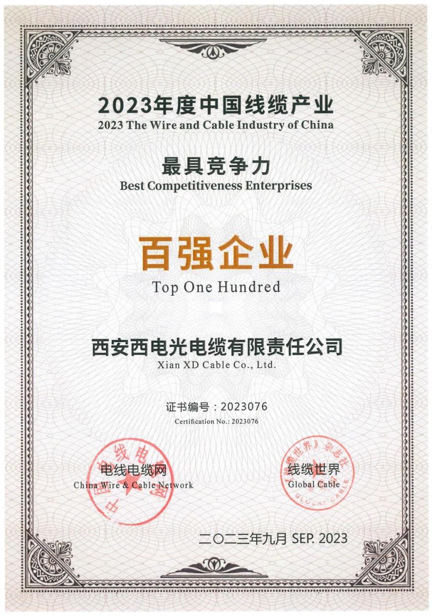 近日,以“強鏈謀局 聚智發展”為主題的2023年中國電線電纜行業大會發布了“2023年度中國線纜產業最具競爭力企業”名單。中國西電集團所屬西電光電纜入選“中國線纜產業最具競爭力企業100強”榜單。