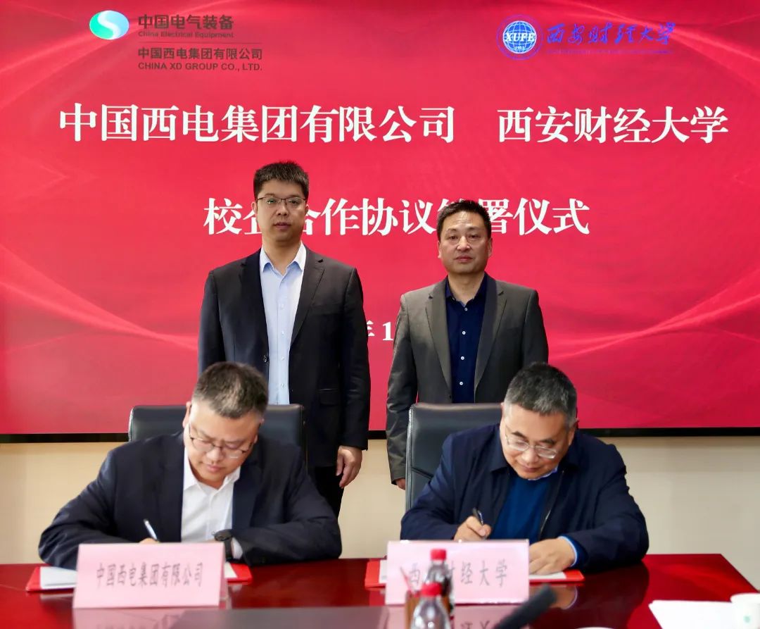 11月22日,中國西電集團與西安財經大學在西安簽訂戰略合作框架協議。中國西電黨委副書記、總經理趙啟,西安財經大學黨委書記楊濤見證簽約儀式。中國西電集團黨委常委、副總經理李紅軍,西安財經大學黨委委員、副校長吳旺延代表雙方簽署戰略合作框架協議。