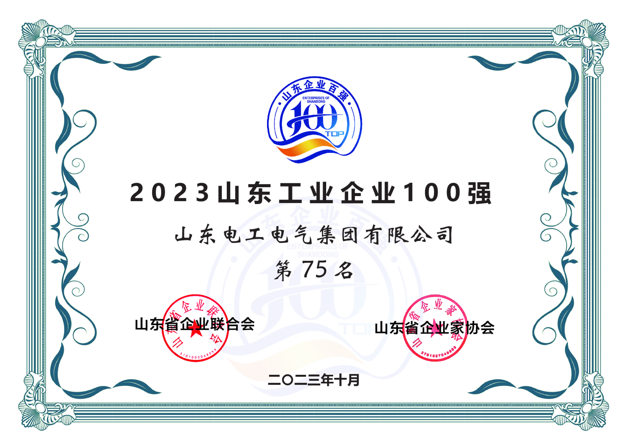 日前,山東省工業和信息化廳公布2023山東工業百強企業名單,山東電工電氣憑借高質量發展再次登榜,較去年排名提升17位!