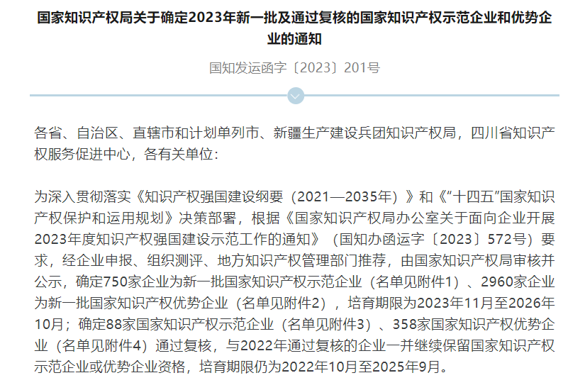 近日,國家知識產權局公布了新一批國家知識產權優勢企業名單,山東電工電氣憑借過硬的技術創新實力和知識產權管理水平,成功入選。