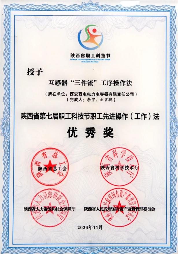 陜西省職工先進操作(工作)法優秀獎——中國西電所屬西電西容“互感器'三件流'工序操作法”