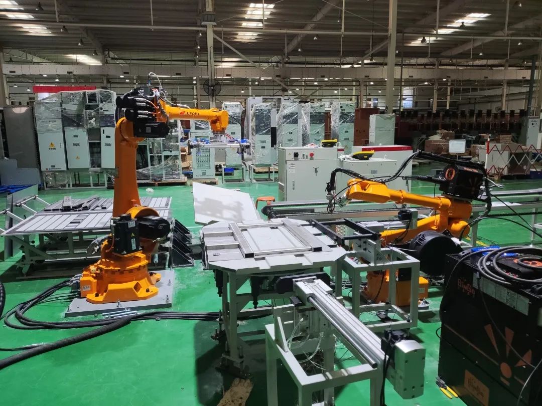 充氣柜焊接項目是在充氣柜氣箱單件筋板焊接時采用搬運機器人和焊接機器人相互配合作業,將人工手工作業模式轉向自動化方向。項目實施后,單面箱體筋板從手工焊接2.5小時縮短至自動化焊接1.5小時,同時有效提升焊縫的一致性,整體提升了焊接的外觀與質量。