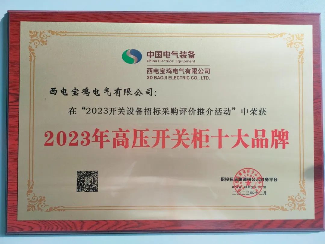 近日,中國西電集團所屬西電寶雞電氣在招投標品牌調研公示服務平臺主辦的“2023開關設備招標采購評價推介”活動中,獲得“2023年高壓開關柜十大品牌”、“2023年真空斷路器十大品牌”殊榮。本次活動受到招投標各方的廣泛關注,吸引全國285家業內知名企業參與,西電寶雞電氣高壓開關柜、真空斷路器產品憑借先進的生產工藝、穩定的產品質量、優質的系統服務,贏得了廣大用戶的廣泛好評,充分彰顯了西電寶雞電氣在電力成套開關設備及核心元器件行業內卓越的實力與領先地位,贏得業內廣泛關注與好評。