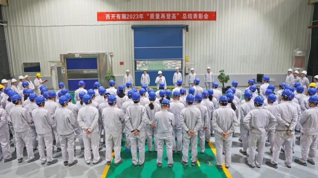 1月3日,中國西電所屬西開有限在隔離開關產品線、斷路器產品線、組合電器產品線、電氣測控產品線分別隆重召開2023年“質量再登高”總結表彰會,總結2023年“質量再登高”取得的成績,表彰在“質量再登高”行動中涌現的先進集體和個人。公司領導班子和各部門負責人以及各產品線全體職工參加。此次總結表彰會首次將會議地點設在四條產品線的生產現場,旨在牢固樹立質量第一意識,著力增進全員質量素養,切實提升職工凝聚力和向心力。