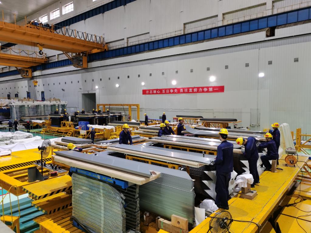 由西電西變承制的隴東—山東±800千伏特高壓直流輸電工程慶陽換流站14臺產品鐵芯工序疊裝全部完工,順利交付下道內裝工序。隴東-山東±800千伏特高壓工程是“十四五”電力發展規劃的重點工程,為“風光火儲一體化”送電特高壓工程,輸電容量800萬千瓦,該工程預計將于2024年12月投運,屆時可以促進甘肅省優質風能、太陽能電力的外送與消納,每年可為山東提供超過360億千瓦時電量,減少二氧化碳排放約1490萬噸。西電西變特高壓車間充分發揮黨建引領作用,推動“黨建+生產+履約”深度融合,開展特高壓項目黨支部書記包干生產、履約立項,生產崗區隊成員掛牌上崗,不斷攻堅克難。在明確時間節點、加強物料跟蹤管理、人員分配調節、工裝場地規劃、環境清潔等方面出臺了一系列管理措施,超前策劃,積極協調組織,嚴密部署,確保西電紅項目高質量履約。