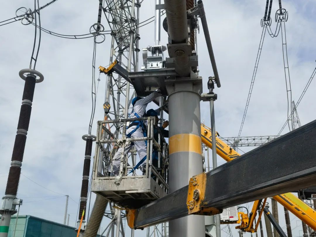 由西開有限承接的±500千伏德寶直流輸電工程寶雞換流站750kV隔離開關增容改造項目邁入關鍵性第二階段,此階段聚焦兩組GW45-800型隔離開關實施全面升級。施工進程中,綜合考慮電網運行安全,主變停運嚴格限定為3天時間,這意味著實際可用于改造的有效時間被壓縮至48小時,項目團隊緊密聯動、反復斟酌每個改造環節的時間規劃,力求精準到分秒。最終,僅在24小時內便完成了隔離開關的拆卸、新裝及二次元件的全面更換,此次改造項目第二階段的順利推進,在嚴守安全底線的基礎上,實現了既定的時間與質量目標,確保了1#主變按時恢復供電,為電網的安全穩定運行再添一份堅實保障,得到了現場各單位的一致好評。后期,西開有限將持續夯實質量基礎,搶抓工期,確保高質量安全送電。