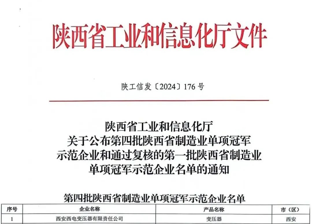 近日,陜西省工業和信息化廳公示了第四批“陜西省制造業單項冠軍示范企業”名單,中國西電所屬西電西變成功入選。這是對西電西變卓越的科技創新能力和市場競爭力的高度肯定,也是對企業生產技術、經營質量效益的充分認可。