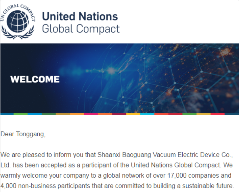近日,中國西電團集團所屬寶光股份正式批準加入聯合國全球契約組織(United Nations Global Compact,簡稱UNGC),標志著寶光股份在提升國際品牌形象、深化企業社會責任實踐方面邁出了堅實的一步。