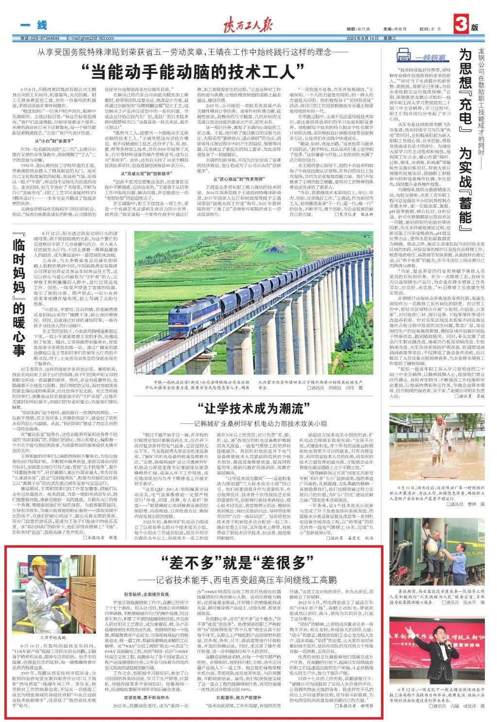 近日,《陜西工人報》第8794期第03版“一線”欄目、陜工網,聚焦報道中國西電所屬西電西變超高壓車間繞線工高鵬的事跡——《“差不多”就是“差很多”——記省技術能手、西電西變超高壓車間繞線工高鵬》。