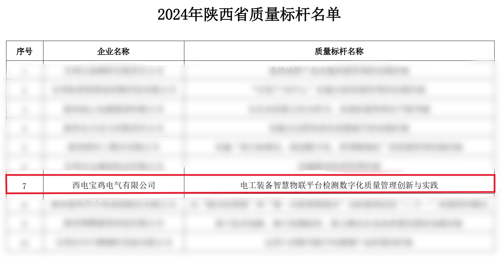 近日,省工信廳公布了2024年陜西省質量標桿企業名單,中國西電集團所屬西電寶雞電氣成功入選陜西省質量標桿企業。這是對企業近年來實施高質量發展戰略、推進產品智能化、自動化、數字化建設的充分肯定,也是對企業堅持質量第一、創新驅動發展戰略的生動詮釋。