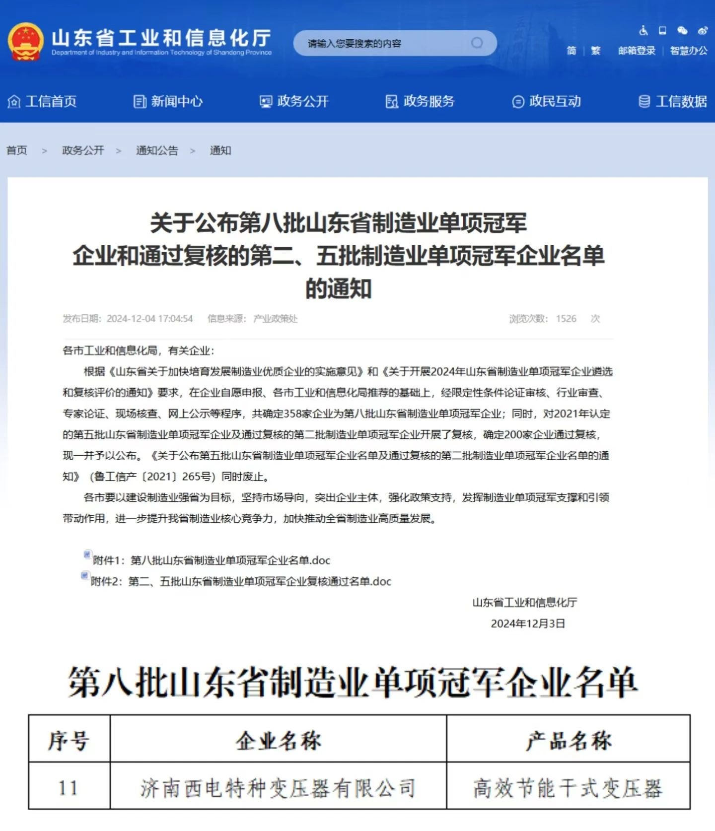 近日,中國西電所屬濟變濟特主導產品高效節能干式變壓器,憑借其卓越的節能性能、穩定的運行表現以及創新的技術工藝,在眾多競爭者中脫穎而出,獲評“山東省制造業單項冠軍”。