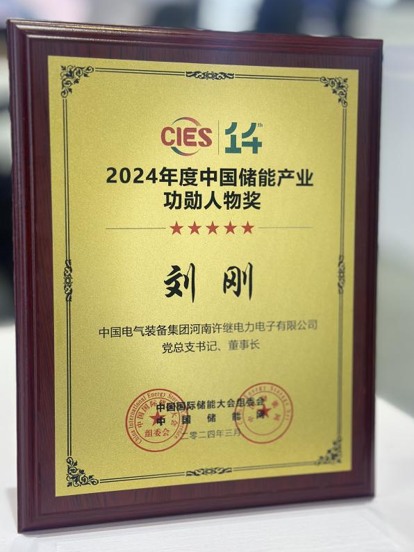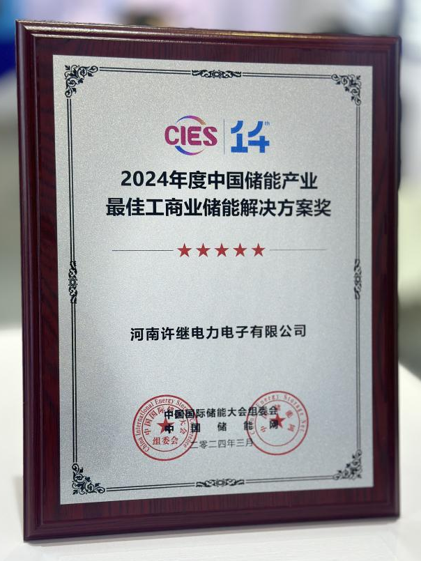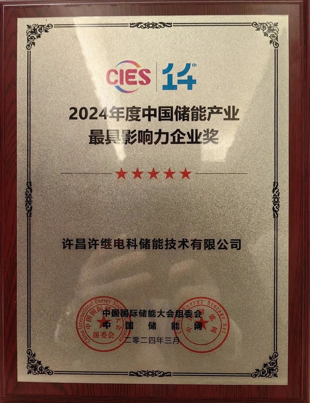 在中國儲能產業最具影響力系列獎項頒獎盛典上,許繼集團電科儲能公司榮獲“2024年度中國儲能產業最具影響力企業獎”,許繼電氣電力電子公司榮獲“2024年度中國儲能產業最佳工商業儲能解決方案獎”和“2024年度中國儲能產業功勛人物獎”。