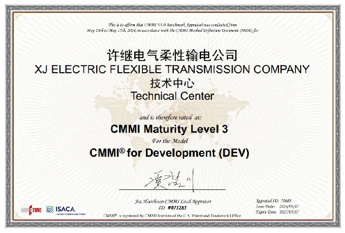 許繼電氣柔性輸電公司成功通過CMMI-DEV V3.0成熟度3級認證,這標志著其軟件研發能力已達國際先進水平,展現了許繼電氣的強大軟件研發與管理實力,為提供更高技術與質量的產品和服務奠定了基礎。