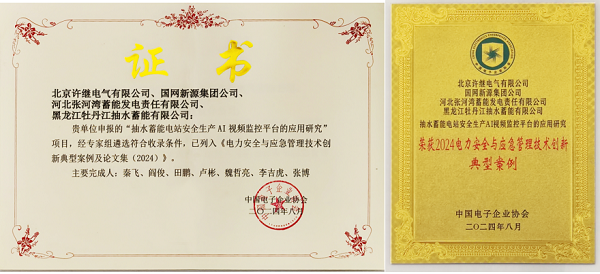近日,許繼電氣所屬北京許繼“抽水蓄能電站安全生產AI視頻監控平臺的應用研究”成功入選中國電子企業協會技術創新典型案例。