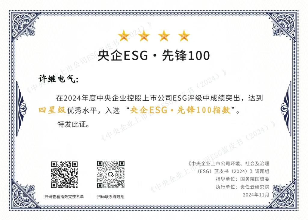 11月7日,由國務院國資委社會責任局主辦,責任云研究院承辦的“第七屆中國企業論壇之國有企業社會責任平行論壇”在北京順利召開,全面總結國有企業社會責任發展經驗和階段性特征。會上發布了《中央企業上市公司環境、社會及治理(ESG)藍皮書(2024)》及“央企ESG·先鋒100指數(2024)”等重要指數榜單。許繼電氣連續兩年入選“央企ESG·先鋒100指數”。