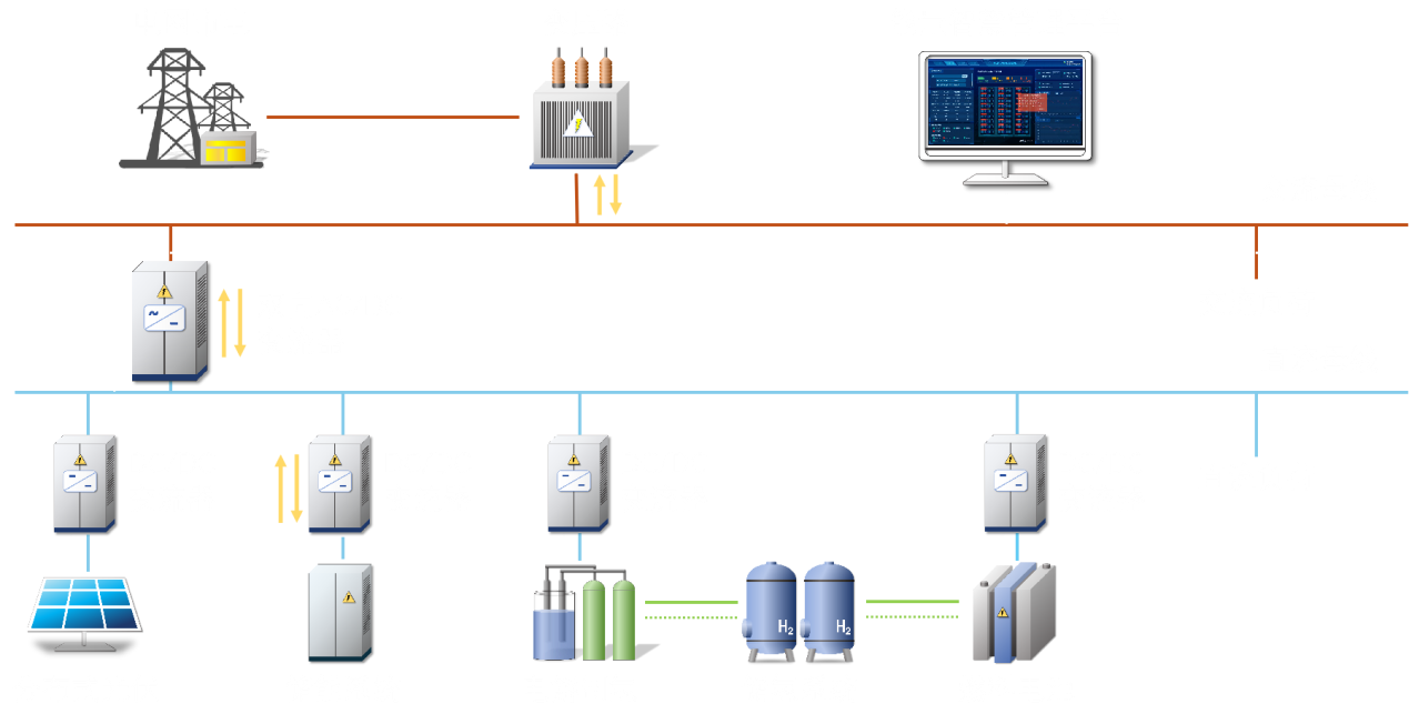 平高預裝式氫電互動系統具有定制化設計、工廠化裝配特點,可以快速接入現有及新建微電網,解決涉氫場景組網復雜、集成程度低、安全管控困難等問題,結合主動控制、前后端一體化協同運行的能量管控策略,提升系統運行經濟性、穩定性與安全性。同時其外置式儲氫結構滿足儲氫量柔性擴展,具備長時/大容量儲能能力,從而適應目前涉氫系統建設規模快速擴大及氫能作為二次能源和終端能源低成本應用的要求。
