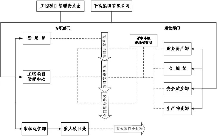 近年來,平高集團工程項目業務板塊發展成效顯著,但隨著業務規模的不斷擴大與業務領域的不斷拓展,逐步呈現出了項目總體規模大、涉及領域廣、商務模式多樣等特點。為推動公司高質量發展,適應市場需求,助力提質增效,提高項目風險防控能力,平高探索建立了工程類項目多層級全壽命創新管理體系。該體系聚焦風險防控,形成了公司、項目單位及項目部多層級,事前、事中和事后全流程,生產運營管理部門和工程項目專職管理部門齊抓共管的管理體系。
