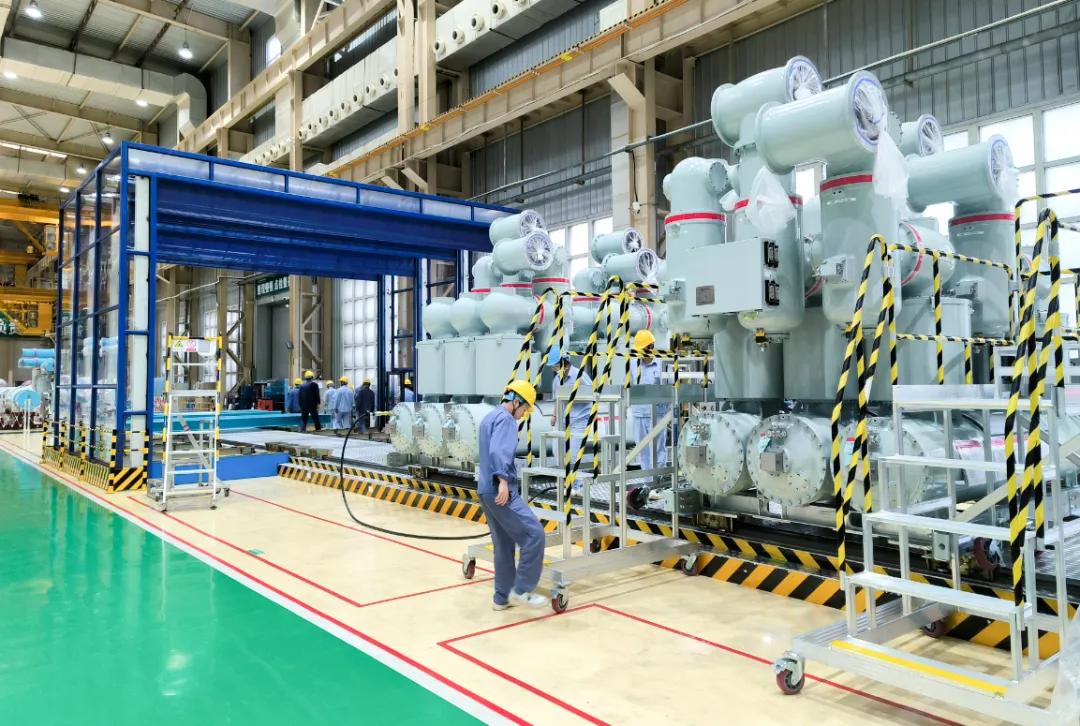 超特高壓事業部實施330/550節拍化連續流軌道總裝、試驗產線建設,裝配試驗能力提升33%,節約總裝車間面積約25%,轉運效率提高60%。開展MES深化應用,打破現有數據孤島,裝配各區域潔凈度、氣體處理、試驗全流程智能監測,裝配、質量、試驗信息統一集成。