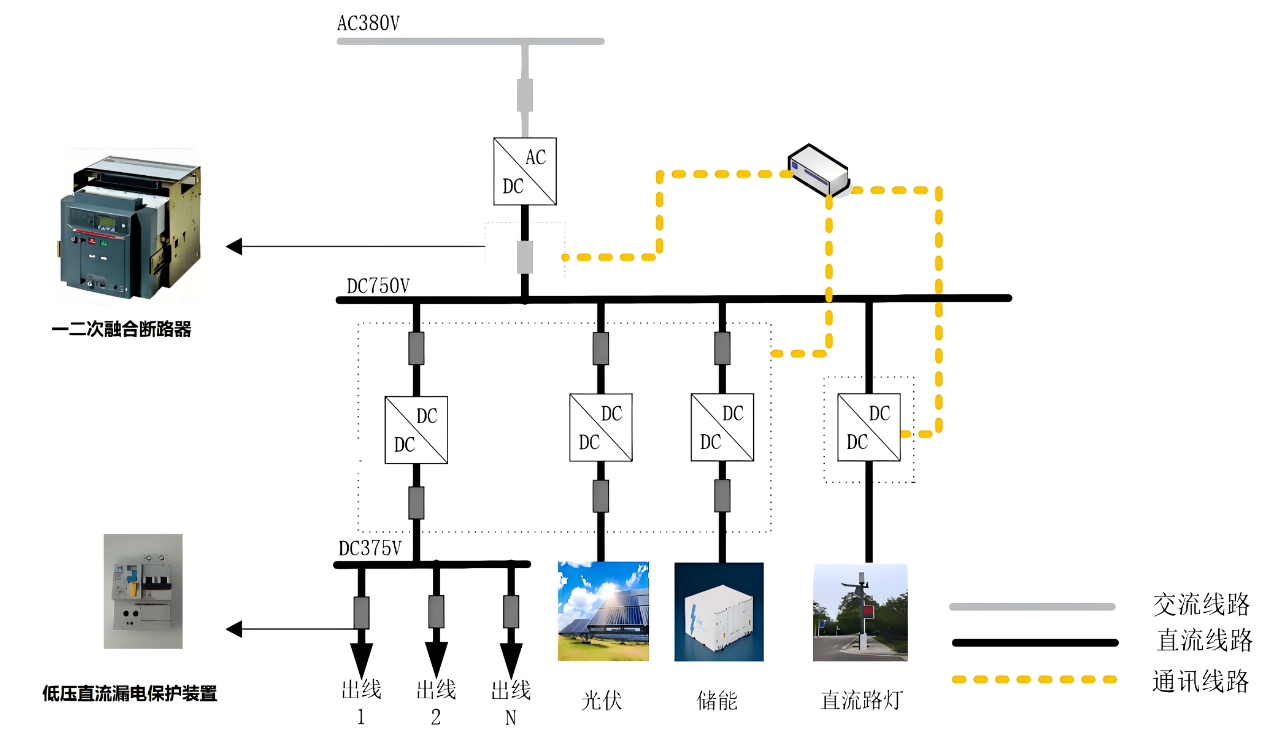 目前,該項目的樣機已在雄安商務服務中心低壓直流配網建設工程現場成功應用,并在低壓直流總進線側安裝了一二次融合智能化低壓直流斷路器,低壓直流漏電保護裝置也順利接入用戶側配電箱。此外,項目研究成果還擴展至雄安新區中交未來科創城、雄安新區王家寨村互助會以及南京交直流混合配電工程技術研究中心等多個示范項目,展現了其廣泛的適用性和良好的應用前景。