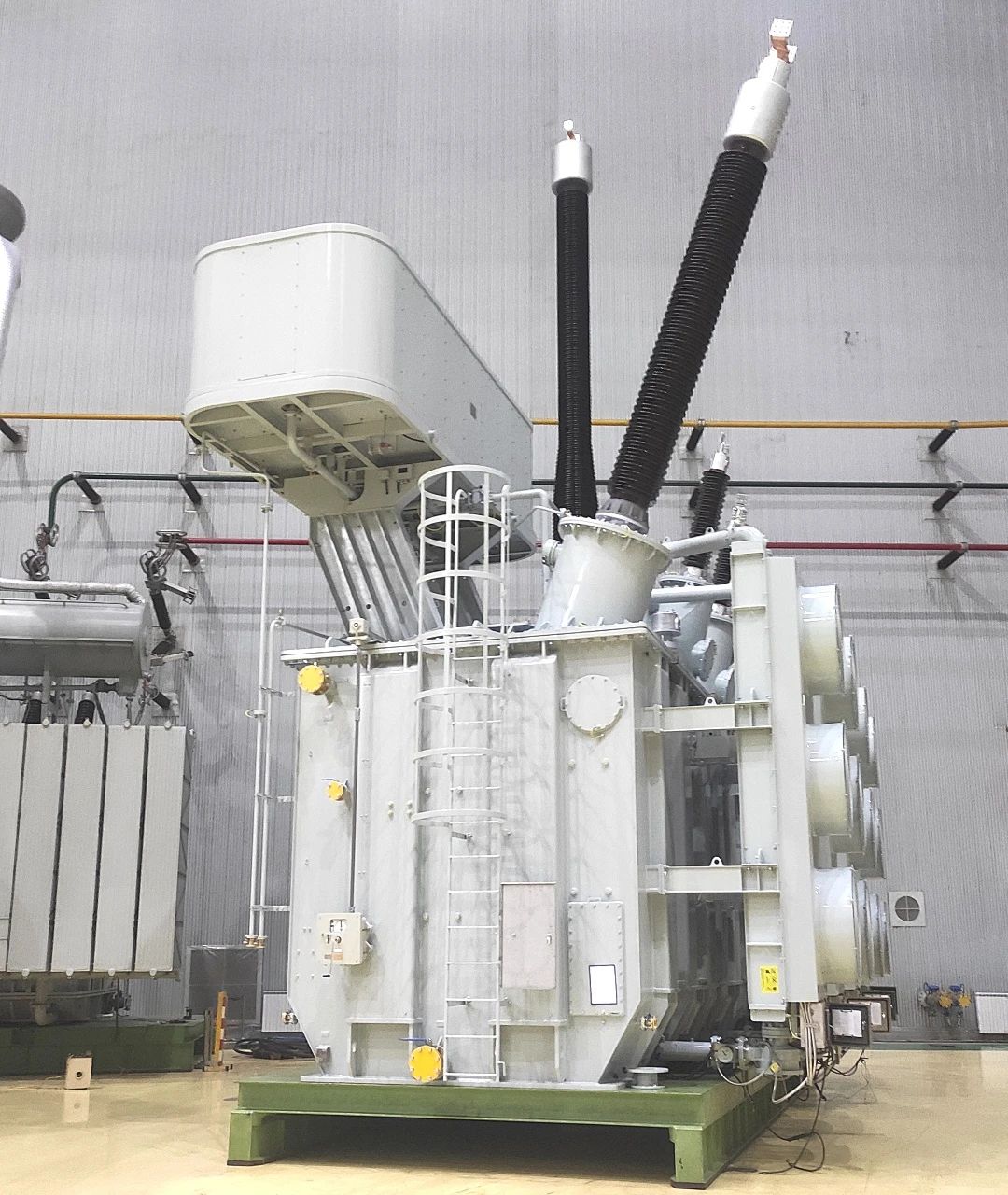該項目產品結構復雜,從鐵心、線圈等內部部件到油箱、冷卻等外部部件,全部由企業完全自主設計,電、磁、力、熱、流場均通過仿真驗證。項目設計過程中,設計人員聯合技術專家對方案、結構進行充分評審,在總結前期產品設計、生產經驗的基礎上,進一步優化,一次試驗成功。現場安裝由售后服務、車間骨干、技術支持組建專業團隊,從人員組織、設備準備、施工流程、技術支持等方面進行充足準備,提供優質安裝服務。