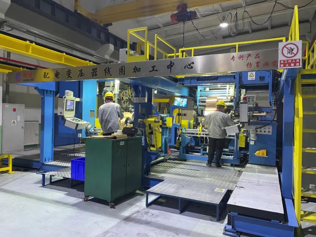 山東電工電氣所屬智能電氣通過全自動高壓繞線機設備的應用,掌握了漆包圓線擠扁技術,逐步摸底漆包圓線的擠扁工藝系數及導線填充率,保證繞制的線圈機械強度。通過對線圈端絕緣、層間絕緣紙帶繞制技術更新,防止點膠紙起皺不服帖等問題,產品質量進一步提升。繞線設備改造后,油浸式配電變壓器高壓線圈繞制效率提升約25%。智能電氣對油變產線進行智能制造升級改造,引進全自動繞線機、立體倉庫、RGV流水線等智能化設備,提升物流轉運效率約50%,提高人均生產效率約60%。