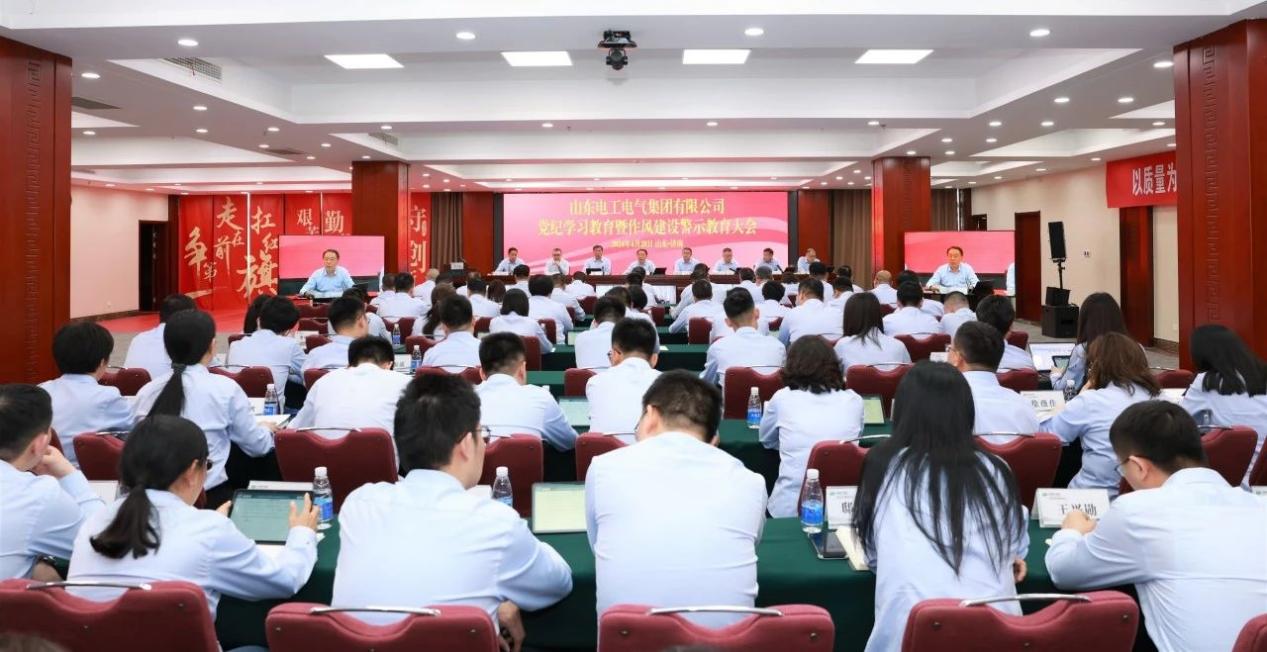 4月28日,山東電工電氣召開黨紀學習教育暨作風建設警示教育大會,山東電工電氣黨委書記、董事長趙永志作主題為《堅持嚴管厚愛 加強作風建設 抓實紀律教育 為全面開啟高質量發展新征程而團結奮斗》的講話,黨委副書記、董事、總經理馬新征參加,黨委委員、紀委書記沙志昂主持,在家領導班子成員參加。