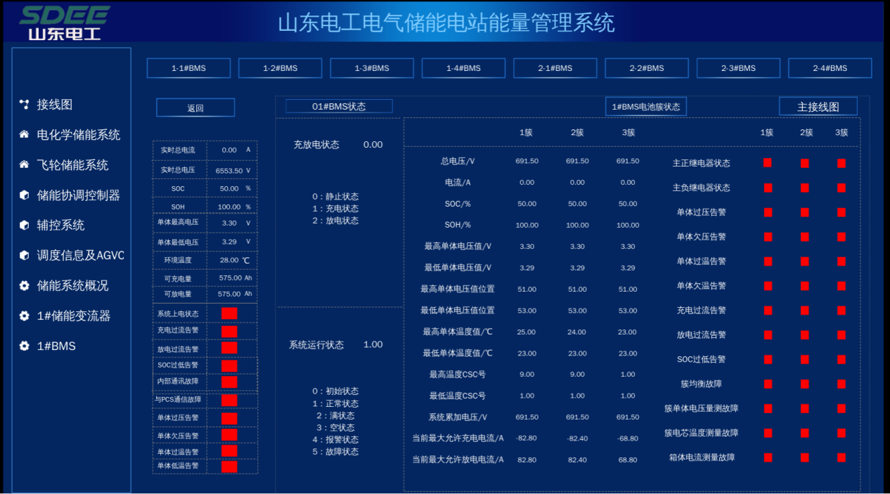 儲能電站能量管理系統(EMS)由山東電工電氣所屬數字科技自主研制、升級,通過國家級新產品鑒定,達到國際先進水平。該產品采用面向服務的軟件體系架構,分為實時監控、診斷預警、全景分析、高級控制等功能模塊,具備數據精準、安全可靠、標準開放、操作簡單等優勢,已在德州臨邑、東營學堂等項目進行示范應用。