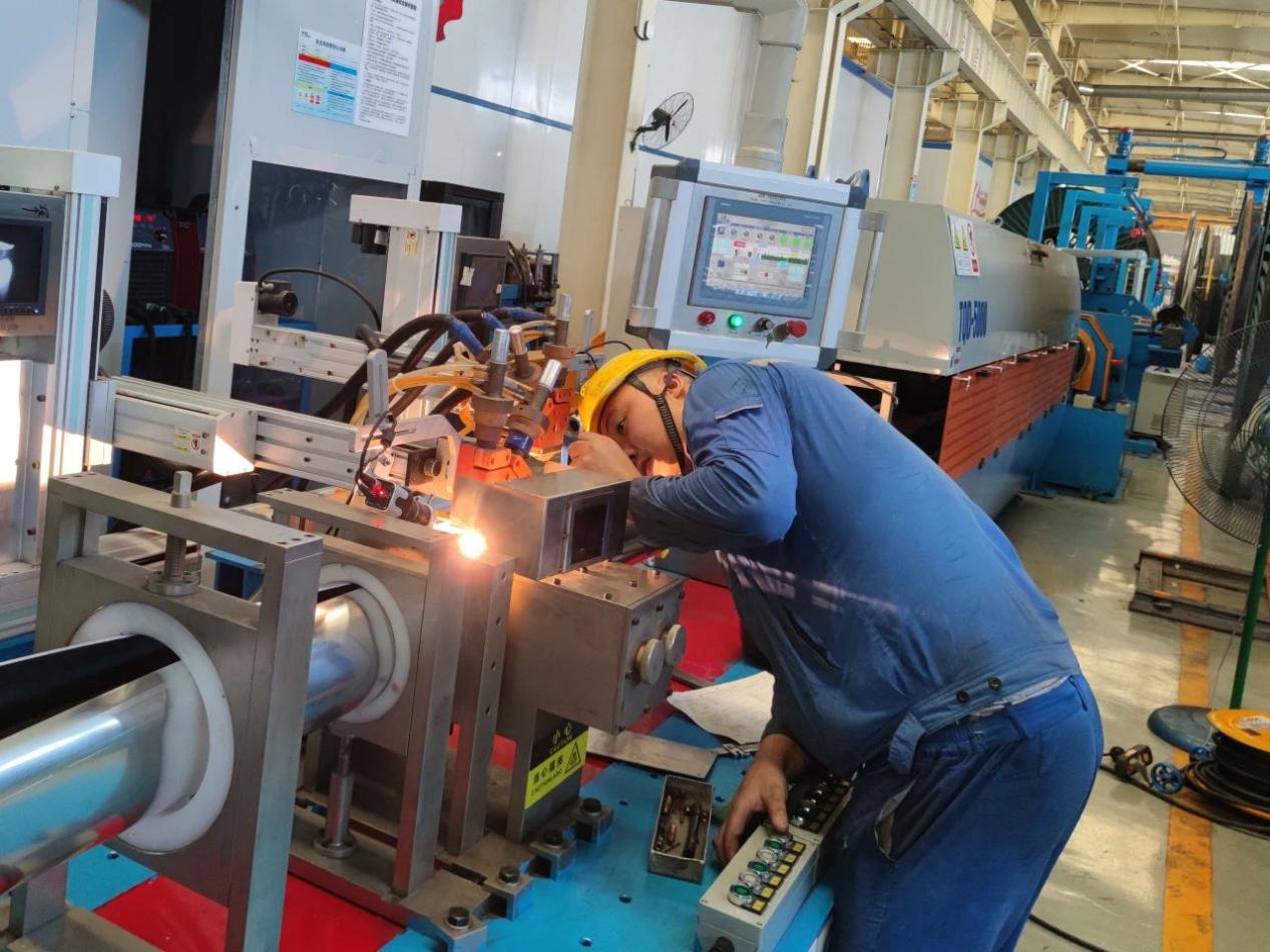 企業研發中心在2024年同時立項在研220千伏和500千伏平滑鋁套電纜。項目啟動之初,高壓車間通過新增支架和導輪,將平滑鋁生產設備與外護套工序緊密相連,為后續樣品的正常生產奠定了良好的硬件基礎。