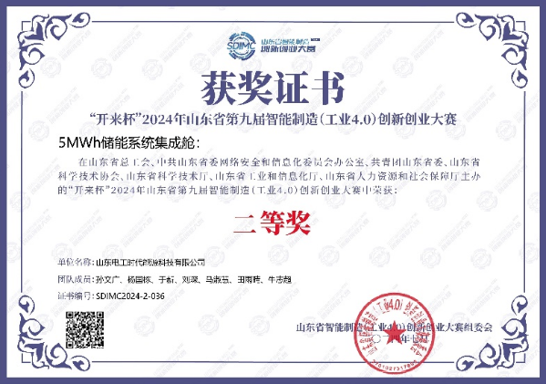 近日,山東電工時代能源(以下簡稱“電工時代”)參加由山東省總工會、共青團山東省委、山東省科學技術協會、山東省科學技術廳、山東省工業和信息化廳共同舉辦的“開來杯”2024年山東省第九屆智能制造(工業4.0)創新創業大賽決賽,取得二等獎的優秀成績。