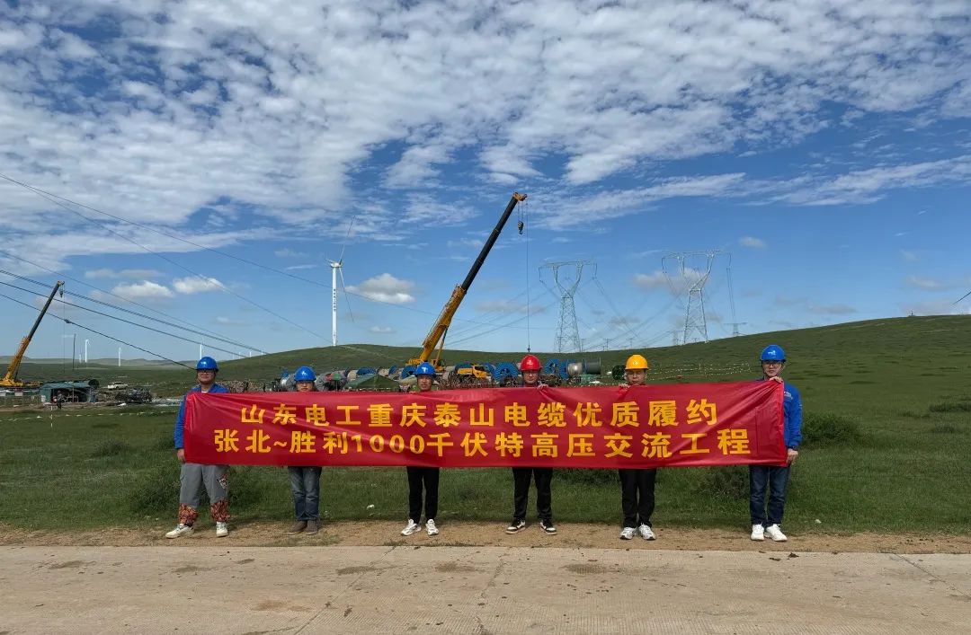 “導線展放到位,準備錨線!”8月30日,隨著最后一相導線成功牽引到位,張北—勝利雙回1000千伏線路工程(蒙1標段)全線貫通。張北—勝利特高壓交流工程,起于河北省張家口市1000千伏張北變電站,止于內蒙古錫林浩特市1000千伏勝利變電站,是國家“十四五”電力發展規劃重點項目。泰山電纜承接導線共計約3318噸。該標段起于內蒙古自治區錫林郭勒盟太仆寺旗牧場村的14L001、14R001塔,單回長度約61公里。沿線海拔約1100米~1500米,施工途經基巖丘陵、丘陵前斜地臺地及寬谷地、沖洪積平原區等地形。